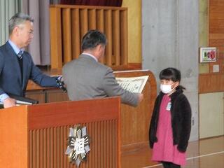 終業式が終わった後、学校に届いた賞状を授与していきました。