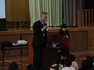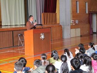 次に校長先生のお話がありました。2学期の全校児童のがんばりをほめてもらいました。