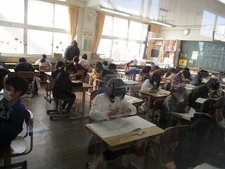 1月15日(水)2校時、各教室でCRT学力テスト(国語)が行われました。今年一年の学習の成果を確認するテストです。みんな真剣に取り組んでいました。