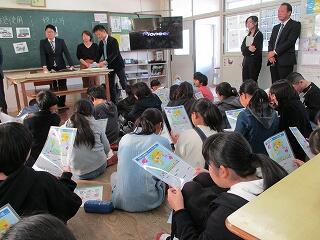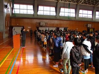 式の後、保健体育部の先生が1月の重点目標「いのちに感謝しよう」についての動画を見せ、身のまわりにはいろんな「いのち」があることに気付かせるとともに、「いのち」に感謝し、大切にしていこうという意識を高めるお話がありました。