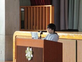 貴重な鑑賞の機会をいただいたお礼を6年生の代表児童が述べました。