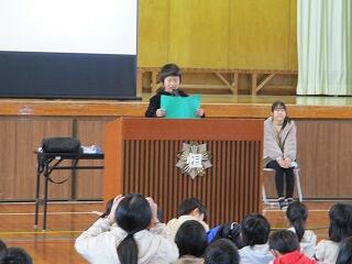 始業式では、2年生と5年生の代表児童による「3学期のめあて」の作文発表がありました。