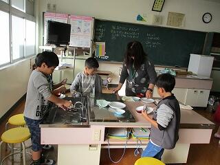 11月16日2・3校時、土曜授業日のこの日、1年生は「お手伝い練習」を行いました。家庭でのお手伝いの前に、お手伝いの仕方で気を付けることを保護者の皆様に教えてもらいながら練習していきました。