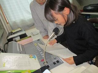 今回は、2年生の作文発表に対して、1年生が感想を伝えました。あらかじめ練習してきたとはいえ、初めて放送発表するので、4人とも緊張していました。でも、上手に発表が出来ていました。