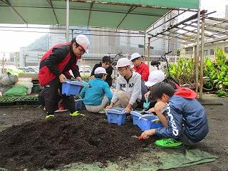 11月25日(月)、フラワータイムが行われました。卒業式を彩る一人一鉢の苗の植え付けと、学級園への植え付けを行いました。