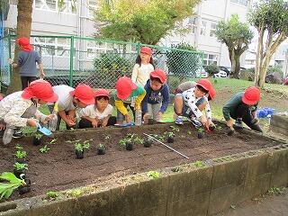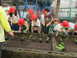 11月25日(月)、フラワータイムが行われました。卒業式を彩る一人一鉢の苗の植え付けと、学級園への植え付けを行いました。