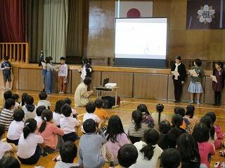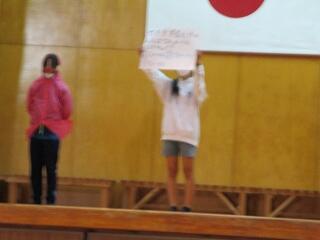 11月26日朝、体育館にて全校集会が行われました。今回は、生活安全委員会と保健委員会の発表がありました。