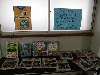 12月7日(土)土曜授業の日、秋山仁先生の講演会が本校体育館で行われます。その講演会に向けて2週間ほど前から、学校の至る所に「秋山仁先生コーナー」が設置されています。
