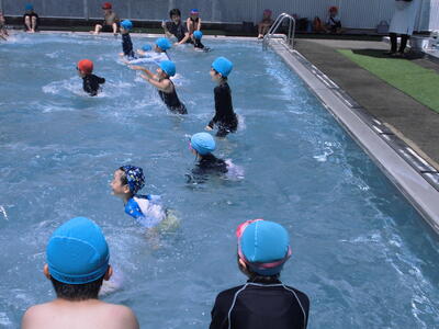 今週、全学年がプール開きをしました。例年より早い梅雨明けということもあり、気温・水温ともに高めで、どの学年も気持ちよくプールでの学習に取り組みました。中でも1年生は、恒富小での初めての水泳学習。笑顔もはじけていました。