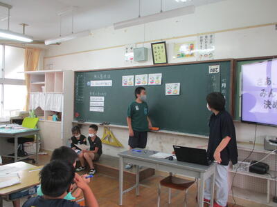 今日で1学期が終わりました。終業式は、コロナ感染防止のため校内放送(Zoom)で行いました。児童代表で、(2年)山本晴斗さんと(5年)矢野遼平さんが、1学期に頑張ったことをカメラの前で堂々と発表しました。