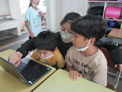 2年生が、タブレットの使い方に慣れる学習をしました。今回は「ロイロノート(先生や友だちと情報共有をするためのアプリ)」のカード機能を使って、「動物を体の大きな順に並べよう」という活動をしていました。