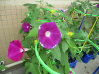 ネットに這わせたアサガオもぐんぐん伸びてます!