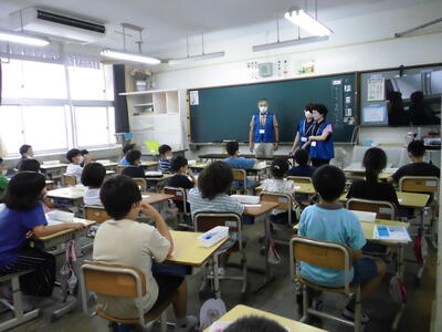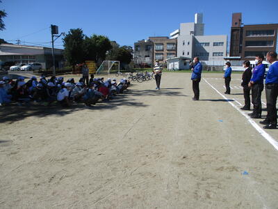2学期の交通安全教室は運動場で実施できました。今回も梅田学園の皆様を指導者にお招きして、低学年は道路の安全な歩行の仕方を、3年生以上は安全な自転車の乗り方を指導していただきました。子どもたちはしっかりと左右を確認したり、手を挙げたりしながら緊張した面持ちで取り組んでいました。