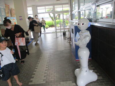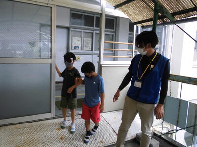 手助け役になった児童は「階段があるよ」「手すりにつかまって」など相手の立場を想像しながら優しく声をかけていました。