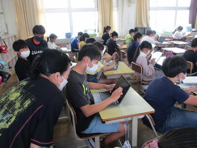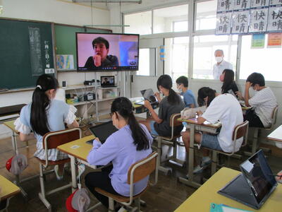 この日お休みだった祐也先生が、自宅からオンラインで授業をしている場面も見ていただきました。