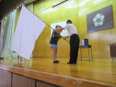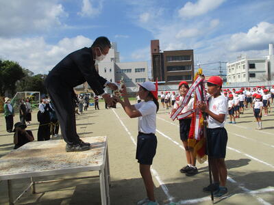 その後、団長、副団長の紹介や団の色決め、リーダーたちのあいさつがありました。どちらの団も一致団結してみんなで盛り上がり、恒富小児童のパワーを見せてほしいです!