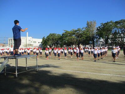 10月7日に運動会の予行練習を行いました。各学年の徒走や団技、表現の入退場などを実際にやってみました。5・6年生は、係の仕事にも取り組み、本番での動きが確認できました。