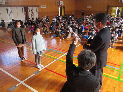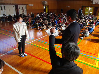 校長先生からは「残りの3か月を楽しく過ごしてほしい。自分だけではなく友達も楽しめるように。そのために『考えて行動する!』を3学期もがんばってほしい。」と励ましのお言葉がありました。