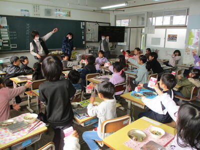2学期最後の給食も、みんなで力を合わせて配膳!