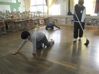 最後の掃除もがんばりました。→帰りの会をして「さようなら」