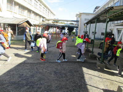 1月18日(水)に地区別集団下校をしました。地区担当の先生たちと安全を確認しながら班ごとに下校をしました。