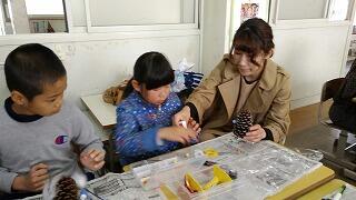 土曜授業の後、お弁当を食べました。その後、教室で親子仲良く、松ぼっくりを使ったクリスマスツリーを作りました。いろいろな材料を各家庭より持ち寄り、世界にひとつだけの「オリジナルクリスマスツリー」を完成させました。準備、計画をしてくださった学年部の役員の皆さん、ありがとうございました。