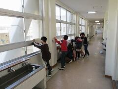 2階3階の教室も、窓を開け、外を見る子どもたちがたくさん見られました。