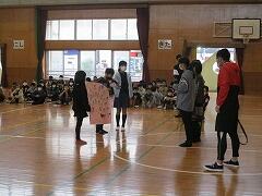 7つの委員会のコーナーを、7つのグループに分かれた4年生が順に巡って、発表を聞く形で行いました。