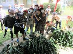 先日、子どもたち一人一人、収穫して自宅に持って帰りましたので、今日は残り全ての収穫となりました。大きいもの、小さいもの、形の面白いものといろいろでしたが、十数本、収穫できました。