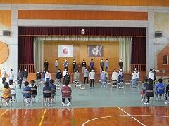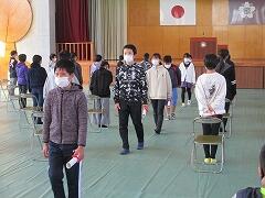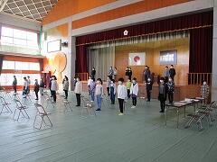 本番と同じ式次第で、新型コロナウイルス感染症対策で本年度参加できない5年生が見守る中で実施しました。