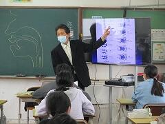 5校時、音楽室では、窓を開けて換気をし、間隔を確保し、マスクを着用した上で、合唱の練習を行いました。