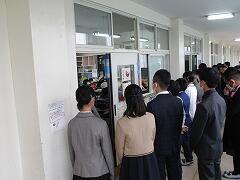 卒業生が廊下に整列し、教室の中にいる在校生とのお別れ式をしました。