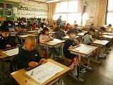 今日は、旭珠友会から講師の先生をお招きし、3年生教室でそろばん教室が行われています。みんな真剣に話を聞きながら頑張っています。
