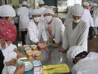 給食の献立は、黒糖パン、チリコンカン、海藻サラダでした。そこで、「ジャーマンポテト」を副菜に選び、グループで協力して調理しました。とても、手際が良く、グループ内での分担・協力がスムーズで、予定時刻より、かなり早く後片付けまで済ませました。