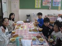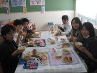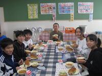 自分達で調理した「ジャーマンポテト」を給食と一緒に笑顔で味わっていました。とても幸せそうな表情をしていました。