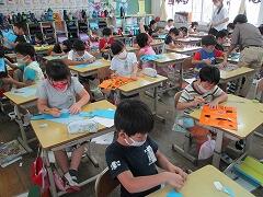 1年生の教室をのぞいてみると折り紙をしたりお絵かきをしたりする姿が見られました。