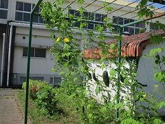 理科観察園の「ゴーヤ」も大小の実を付けています。