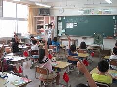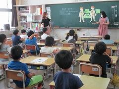英語専科の先生と外国語サポーターの先生の2人で授業をされます。