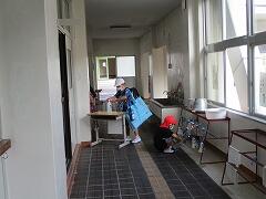 給食室の方でも、24日(月)から早速始まる給食実施に向けて、給食室内外の清掃を行っていました。