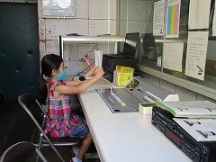 今日は、渡り廊下に出て、間隔を取って、初めて音を出しての鍵盤ハーモニカの練習をしました。
