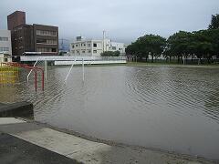 朝、池状態だった運動場も、午前中の早いうちに水が引き、明日からの教育活動も大丈夫そうです。