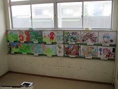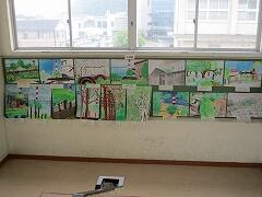 各学年の掲示コーナーを見ると、多くの学年で、絵の具を使った作品の掲示が見られます。どの作品も、繊細かつ大胆な構図、色づかいも濃淡がうまく描かれています。