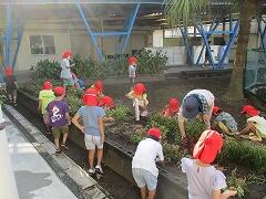 どのクラスも、自分たちの学級園の整備(草取り)を中心に取り組みました。
