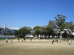 登校すると、早速運動場に出て体を動かす子どもたちやボランティア活動に取り組む6年生の姿がありました。