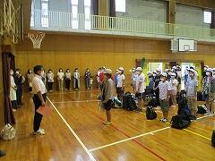 出発式も体育館となりましたが、子どもたちの表情を見ていると、緊張感の中にもわくわく感が漂ってくるような全員笑顔、立派な態度の式となりました。