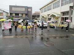 例年は「大きな声で、明るい声で」ですが、今年は「明るい声で」取り組みました。
