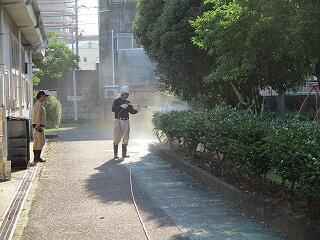 今日、学校技術員の先生が、高圧洗浄機を使ってきれいにしてくださいました。