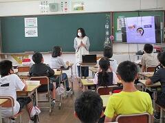 今年の外国語活動(3・4年)と外国語科(5・6年)の授業は、土々呂小学校から専科の先生が来られて授業を行っています。