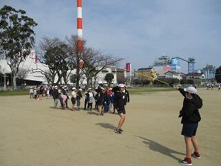 2月26日昼休み、この日も縦割り班交流がありました。この日は、ふえ鬼を行いました。ふえ鬼は、鬼にタッチされた人が鬼になり、鬼がどんどん増えていく鬼ごっこです。