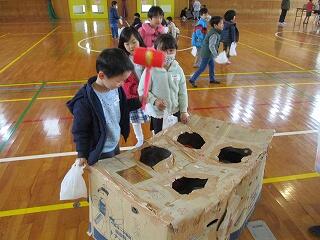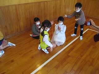 保護者の方々が説明を聞いている間、新入学予定児童は、現2年生との交流会に参加しました。2年生が準備した様々な遊びに参加してとても楽しい時間となりました。